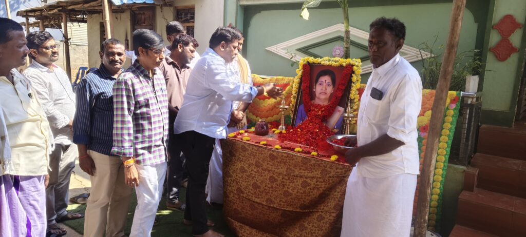 తిరుపతి జిల్లా రైల్వే కోడూరు నియోజకవర్గం సెట్టిగుంట గ్రామానికి చెందిన  కోల వెంకట్రామయ్య సతీమణి పెద్దకర్మ కార్యక్రమానికి హాజరై చిత్రపటానికి పూలు వేసి నివాళులర్పించిన వైయస్సార్సీపీ రాష్ట్ర అధికార ప్రతినిధి, కోడూరు నియోజకవర్గ ఇన్‌చార్జ్, మాజీ శాసనసభ్యులు కొరముట్ల శ్రీనివాసులు.
