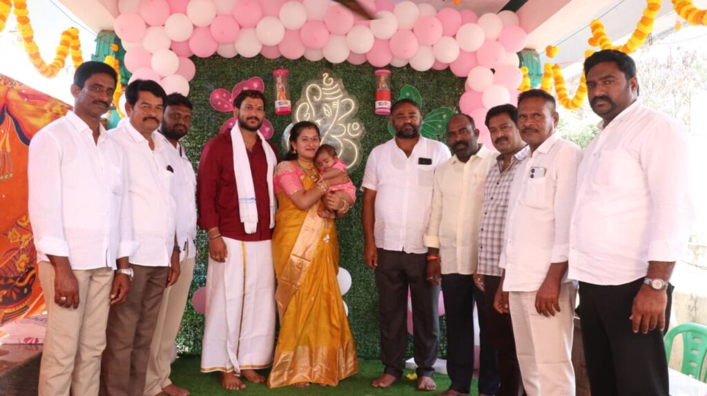 ఈ సందర్భంగా చిన్నారికి శుభాకాంక్షలు తెలియజేసి, కుటుంబ సభ్యులతో స్నేహపూర్వకంగా ముచ్చటించారు. కార్యక్రమంలో పార్టీ ముఖ్య నాయకులు, కార్యకర్తలు పెద్ద సంఖ్యలో పాల్గొన్నారు.